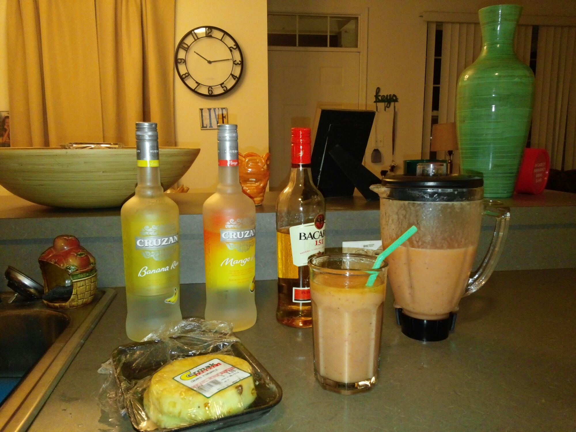 A tropical smoothie. You can multitask and start with this drink if you have company. Love the fact its fresh fruit based, strawberries and papayas aren’t pictured but used.
