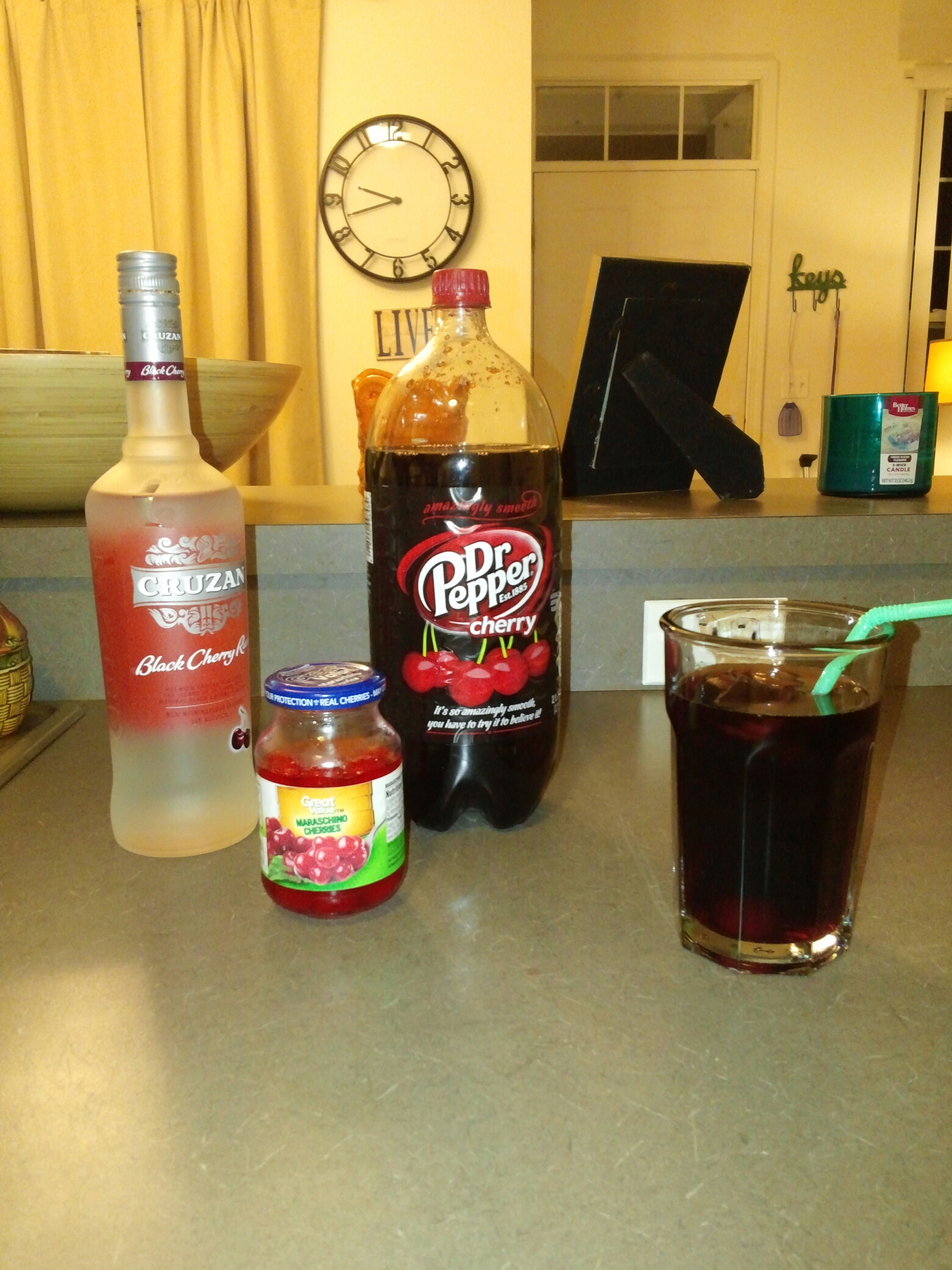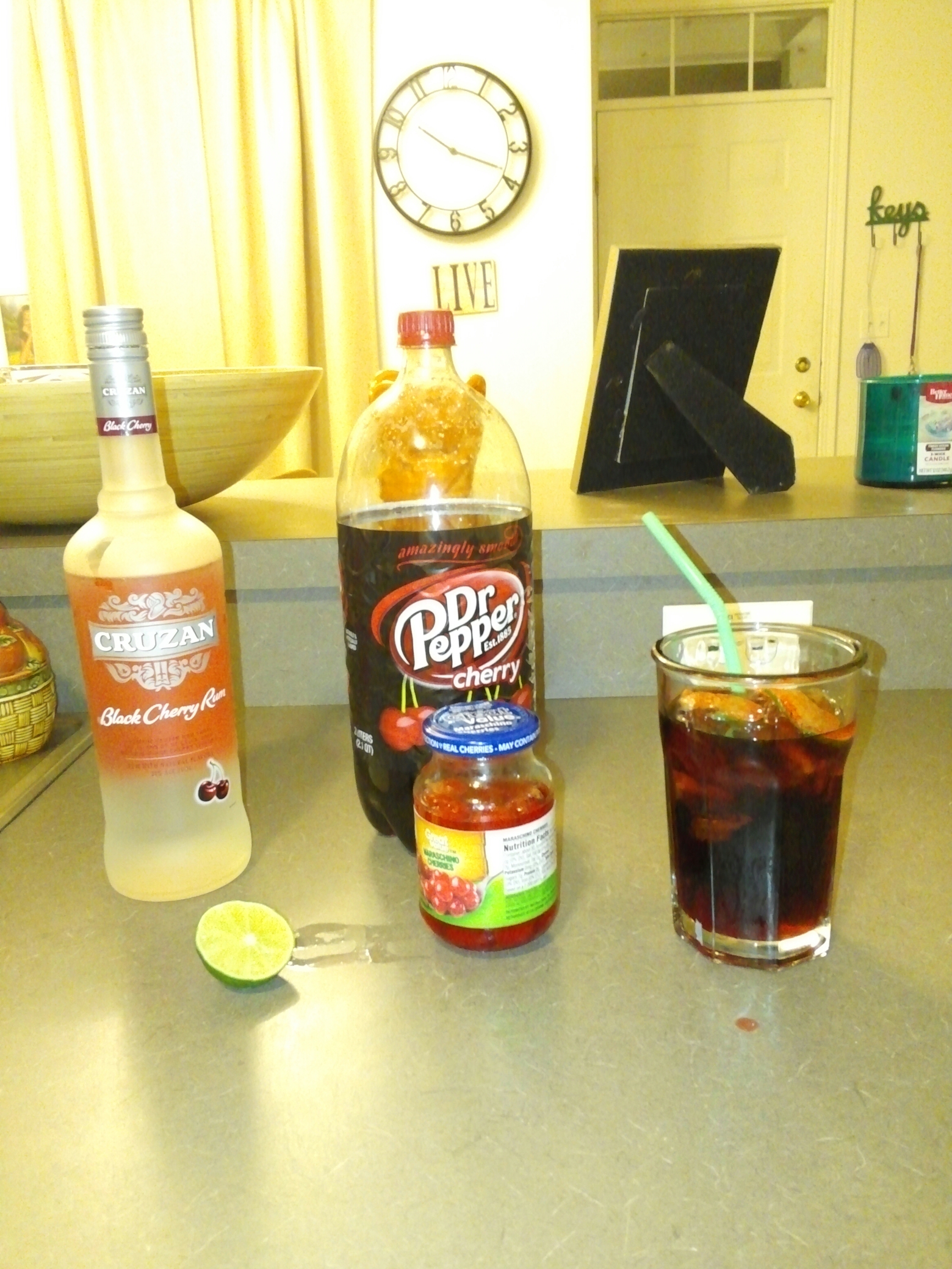 Now pay attention. One thing as a bartender you learn is one little change will make a whole new drink. I put my twists to two classics, rum and coke, and the cuba libre. I’ll let you see the changes. One that I will note is soaking the lime in cherry juice.