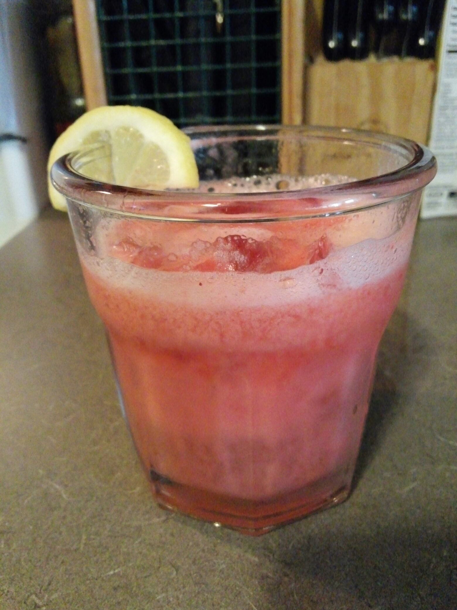 My strawberry lemonade fizz. Great drink with some bbq chicken, potato salad, and a desert. You can make it as thick or thin as you want. Strawberries, lemon juice or lemonade, strawberry puree and ice. Add seltzer water, and boom! If you want a grown drink, replace the water with vodka.