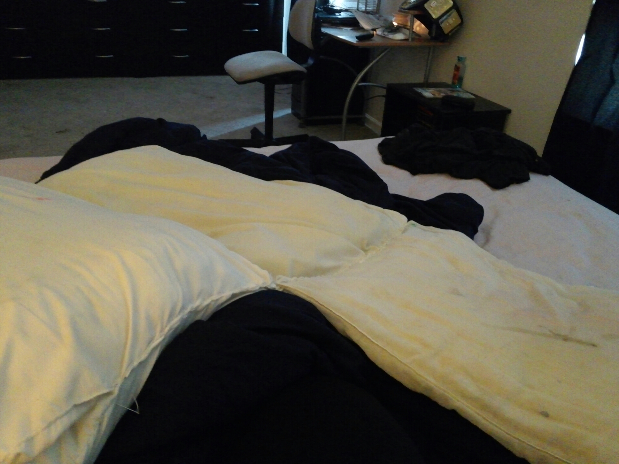 The next day, we tackled the dog bed issue. I got a 5 month old lab. She’s cute, hyper, and spunky. Problem, she loves to play musical bed chairs while sleeping. I honestly don’t mind her sleeping in the bed, but not stay still or taking over the whole bed is a problem. I also knew I didn’t want to buy a bed, she grows out of it in a year, and I’m in the same situation I’m in now.