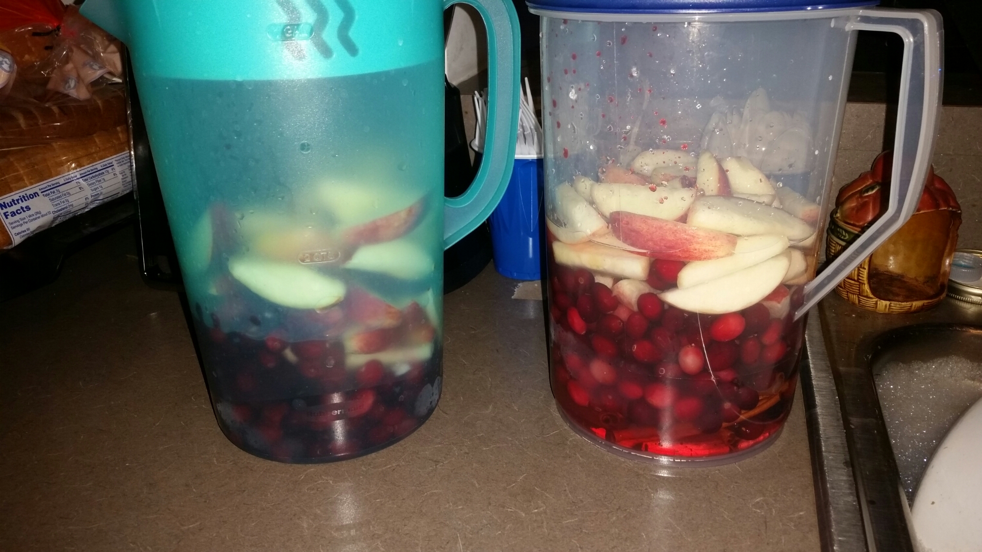 As pictured, I poured the vodka into a pitcher, with cranberries, cinnamon and apples. Real easy and quick. The long journey begins. It takes two weeks to infuse. Everyday, you shake the ingredients in the container. Over time, you’ll see the change, and smell the changes in the liquid. I will of course have a part 2 to this post to show the ending results. Once you are done, you strain out the ingredients into a different container, through a cheese cloth.