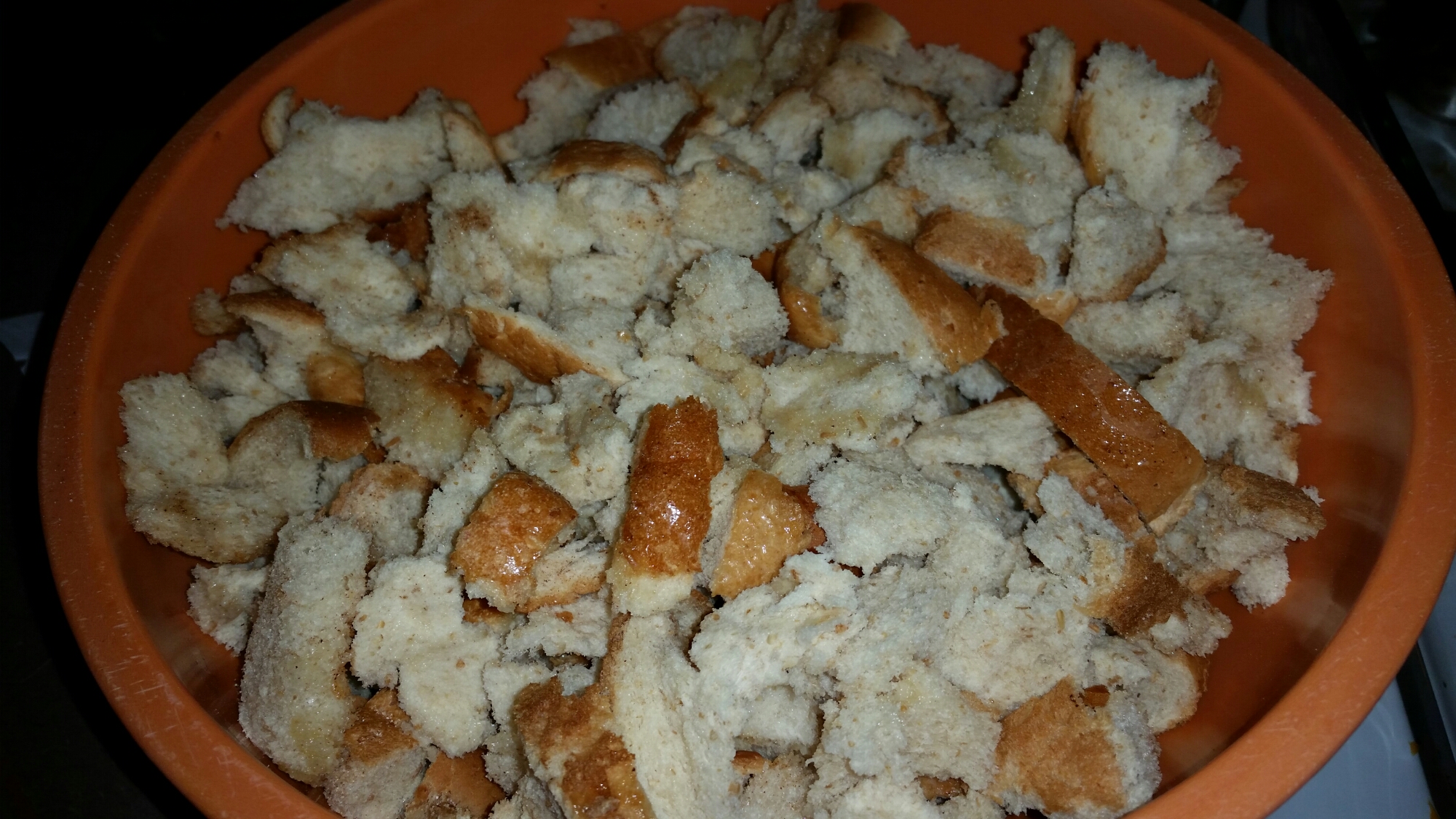 1 loaf of bread(I used honey wheat) cut into cubes or tore into small pieces