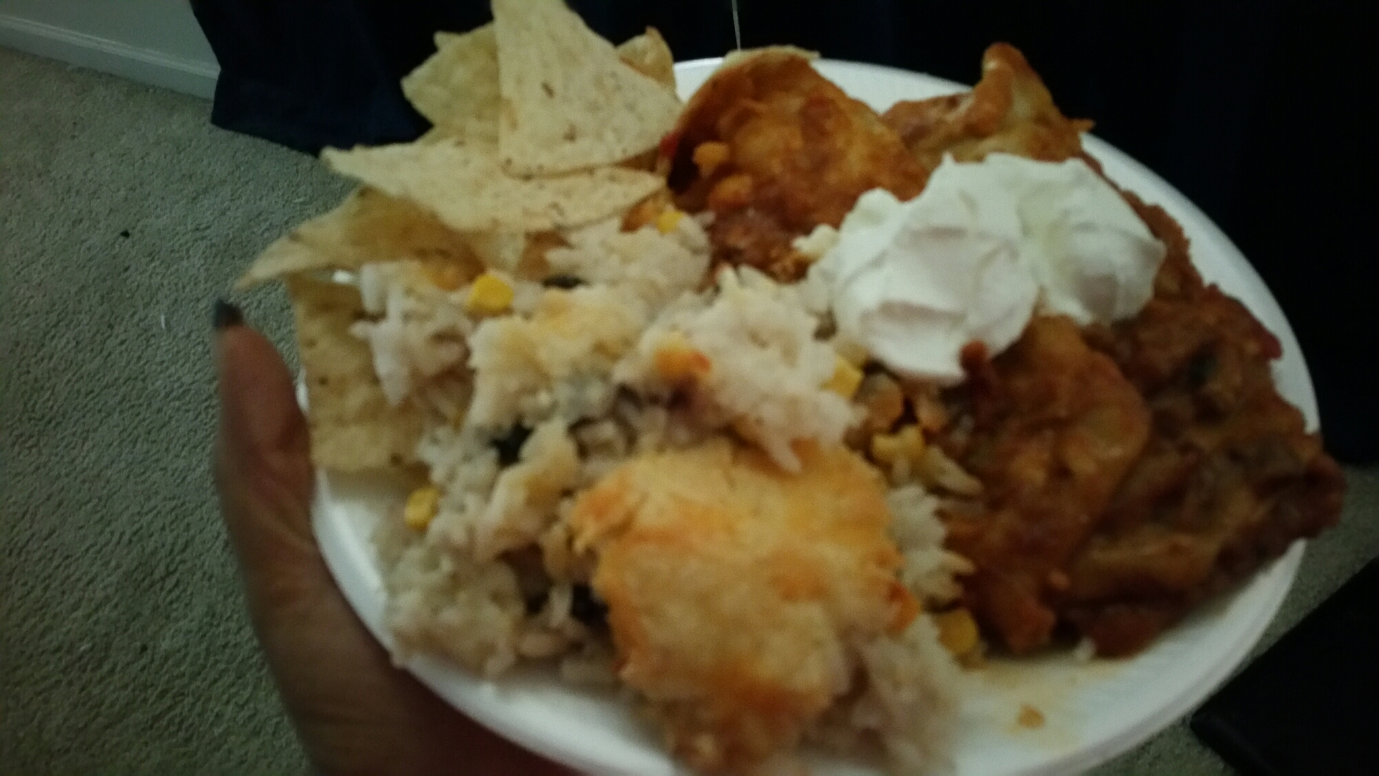 Sweet Chicken and Beef Enchiladas with Mexican Sour Cream Rice
